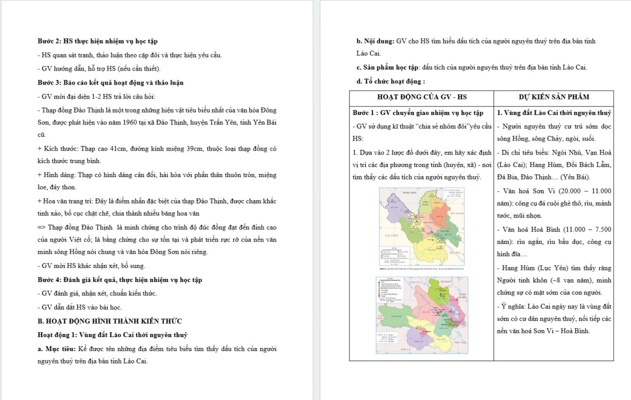 – Phát triển năng lực tìm hiểu: Kể được tên những địa điểm tìm thấy dấu tích của người nguyên thuỷ trên địa bàn tỉnh Lào Cai.