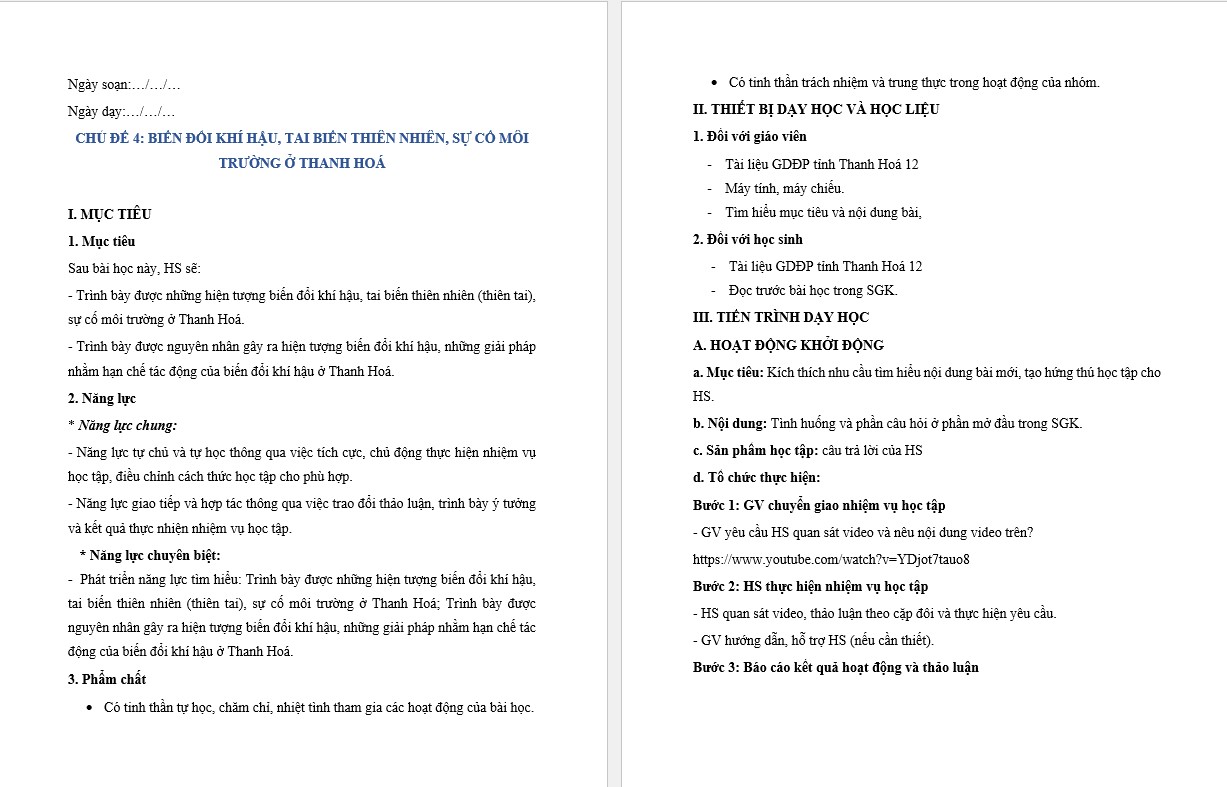 II. THIẾT BỊ DẠY HỌC VÀ HỌC LIỆU
