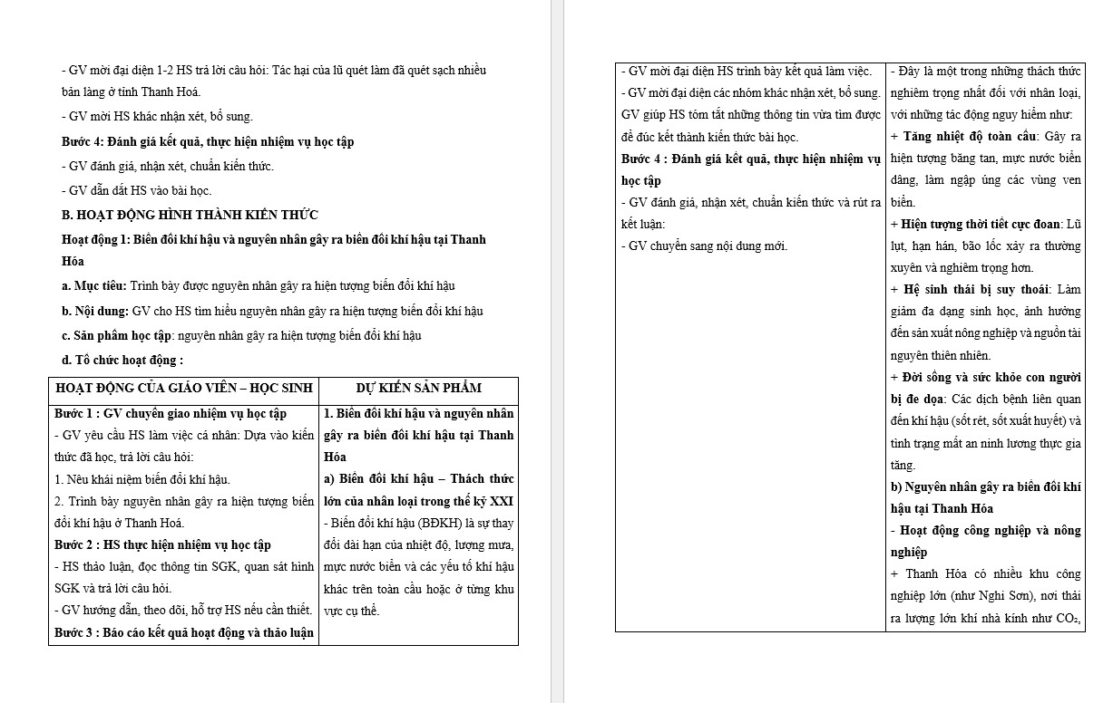 – Phát triển năng lực tìm hiểu: Trình bày được những hiện tượng biến đổi khí hậu, tai biến thiên nhiên (thiên tai), sự cố môi trường ở Thanh Hoá; Trình bày được nguyên nhân gây ra hiện tượng biến đổi khí hậu, những giải pháp nhằm hạn chế tác động của biến đổi khí hậu ở Thanh Hoá.