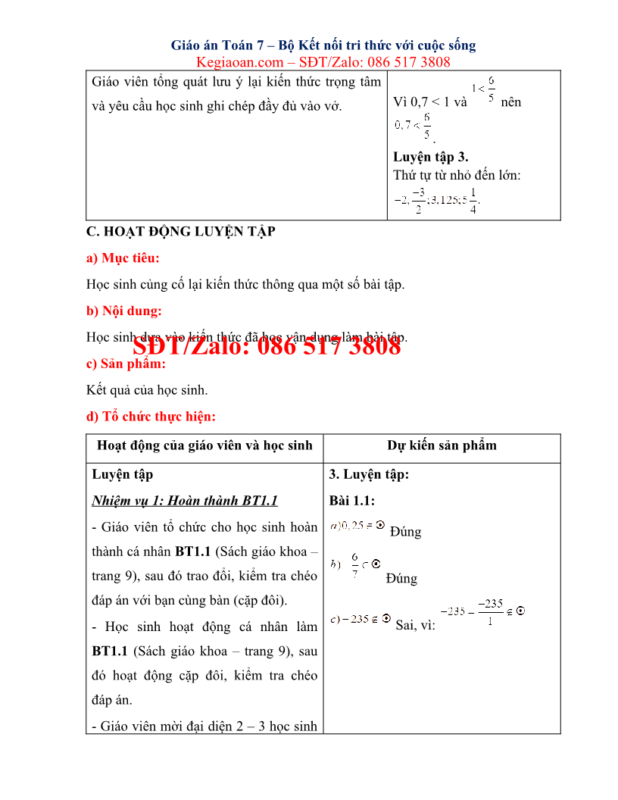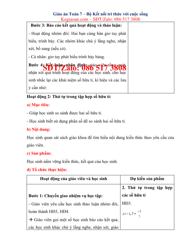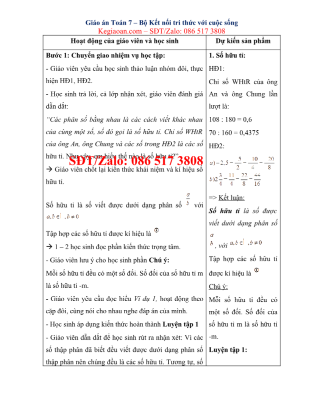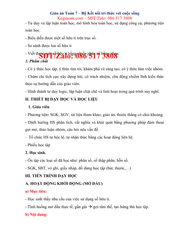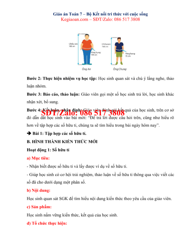 Giáo án môn Toán lớp 7 kết nối tri thức soạn chi tiết, đầy đủ nhất theo mẫu kế hoạch bài học của Bộ GD-ĐT.